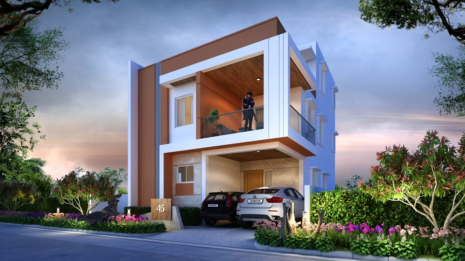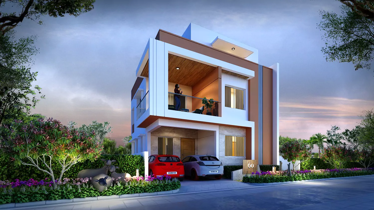 External: Texture paint with combination of smooth wall care putty finish in specified areas.